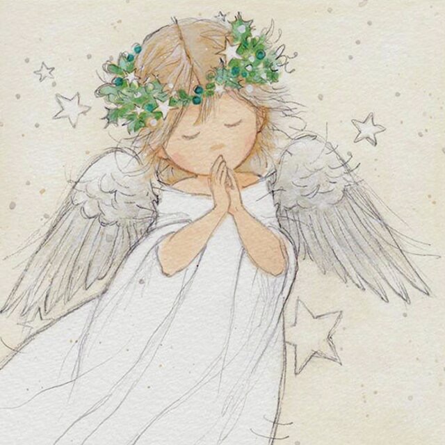 Så søte uten at det blir for mye - nydelige servietter med en yndig engel - alt er nedtonet forutenom den friske grønne kransen på engelens hode - så fint!