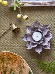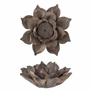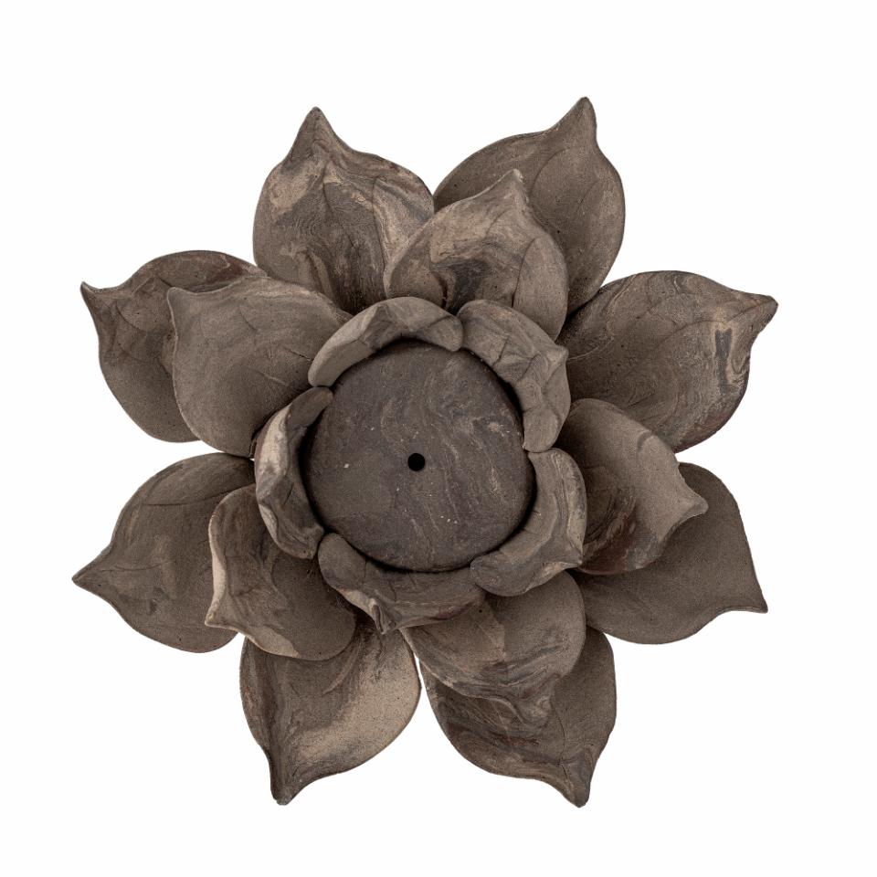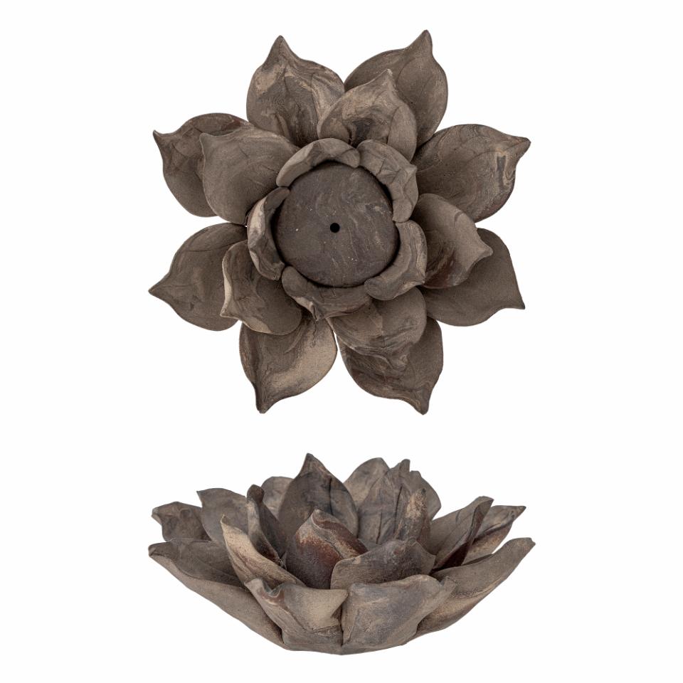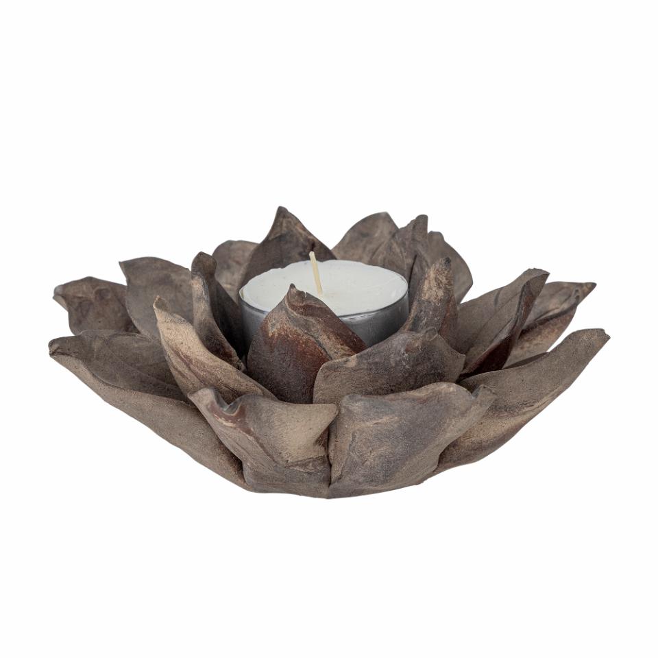 Eira er håndlaget i keramikk, og hver enkelt er unik. Staken er satt sammen av flere blader som tilsammen danner en blomst med brun, matt overflate. Det oppstår et nydelig lysspill i bladene når lyset skinner i blomsten. Passer til telys og til smale kubbelys.
