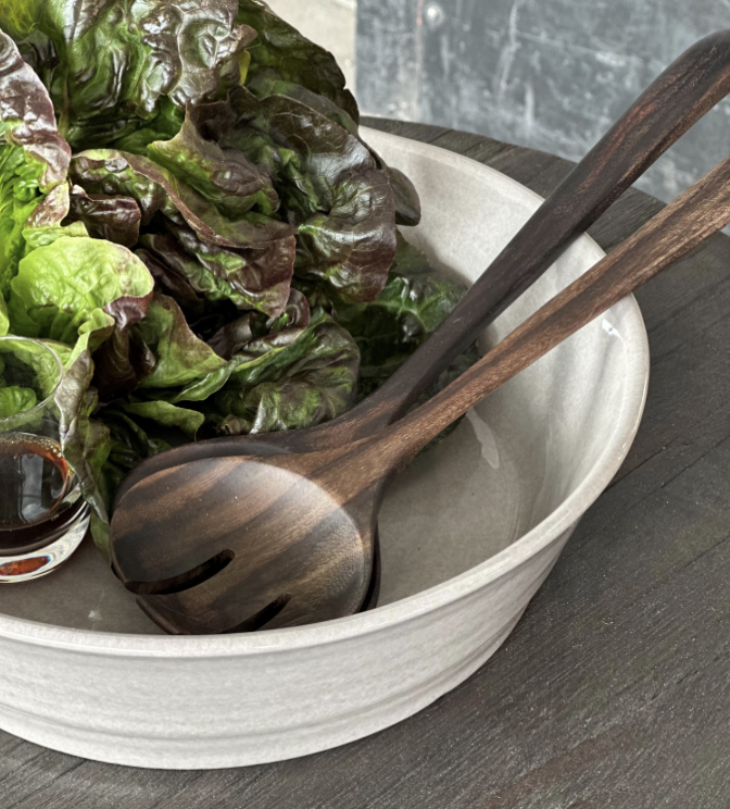 Nydelig salatbestikk fra Bruka Design i oljet rosentre. Dyp mørkebrun farge - virkelig fint!