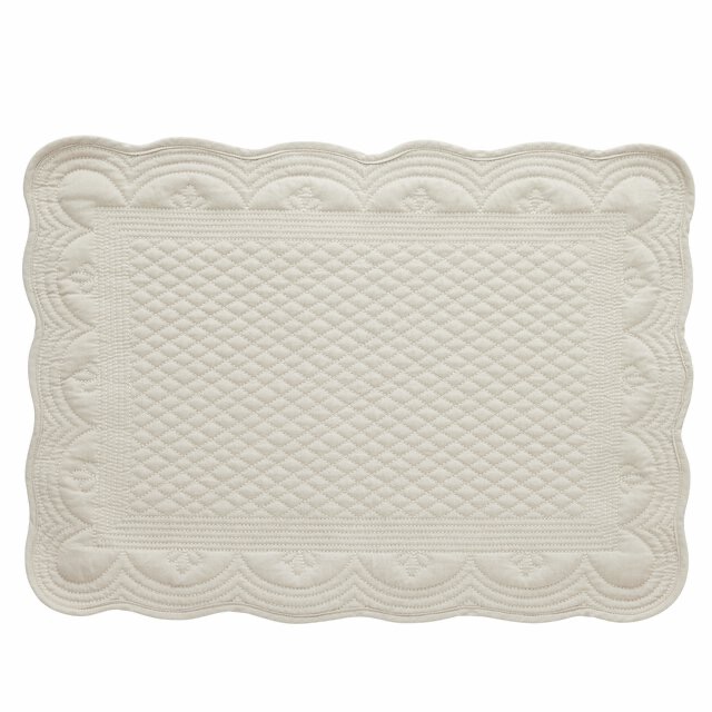 De elegante men koselige Estrid spisebrikkene fra danske Lene Bjerre er produsert i 100% bomull. De bærer med seg essensen av Lene Bjerre: Klassisk, tidløs, myke former med et forseggjort preg. Den quiltede overflaten og de vakre bølgede kantene gjør at spisebrikken egner seg både til hverdags og fest.