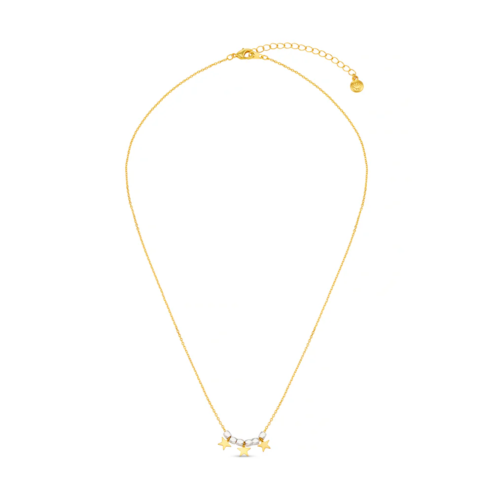 Halskjedet for deg som elsker både gull og sølv. Nydelige små stjernecharms med sølvperler. Vi har matchende øredobber ⭐️