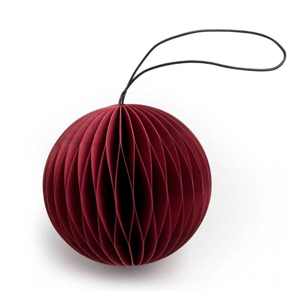 Nydelig julekule i brettet papir. Svært forseggjort og ordentlig, oppheng i svart liten skinnsnor. Lukkes med magnet, og kan foldes sammen og brukes i år etter år. Disse papirkulene fra Nordstjerne er svært vakre med et særegent dybde og fargespill. De ulike fargene passer godt sammen, så her kan du sette sammen din egen favorittkolleksjon!